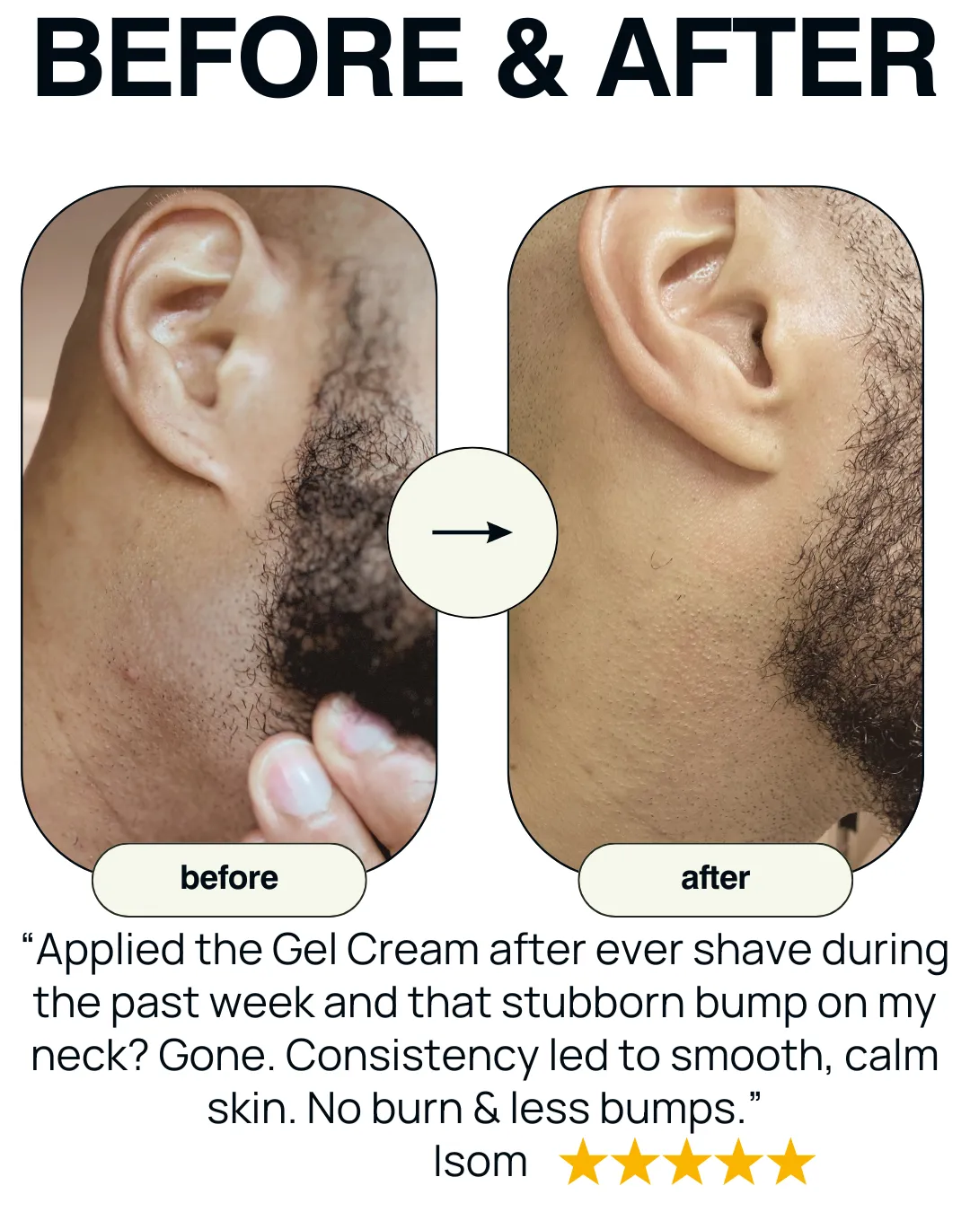 Most men’s products ignore how melanin-rich skin scars, darkens and reacts to shaving—that’s why you still see razor bumps, ingrowns, hyperpigmentation and dry-but-oily skin. Use it morning and night after cleansing to calm post-shave burn, keep your skin soft and vibrant, and build a simple 3-step routine: cleanse, GDLU Gel Cream, sunscreen.